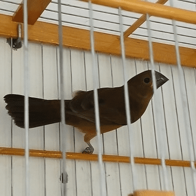 Essa é uma filhote de bicudo que ficou para ser a matriz do criatório. Antes do cardápio de reprodução tinha problemas com as fêmeas arrancando as penas dos filhotes. Atualmente todos os ovos estão vindo cheios e o filhotes sendo desmamados com saúde pelas próprias mães.