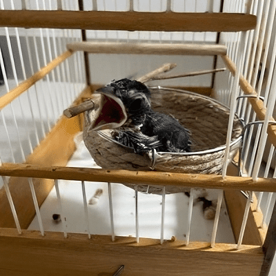 Netim foi abandonado no ninho quando era apenas um ovo, com os cuidados certos e com um cardápio feito exclusivamente para ele, cresceu e se desenvolveu com saúde.